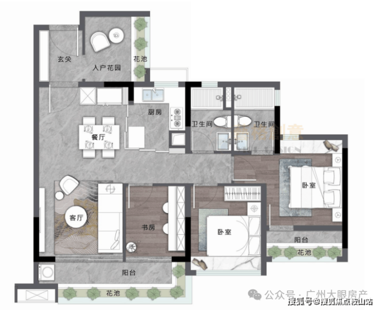 小区采用围合式布局设计,智慧城唯一容积率低至 2.5 的项目,打造 12+1 层高的花园小高层,楼距宽达 90 米以上,户户皆景,在售 78-118 ㎡的三房至五房,拥有 LDKG 客餐厅一体化设计,双面宽阳台、多面宽采光设计,保证所有厅房都具有最佳的景观视野,超高实用率,最高达到 100%以上(含赠送),是天河区唯一户型高赠送社区