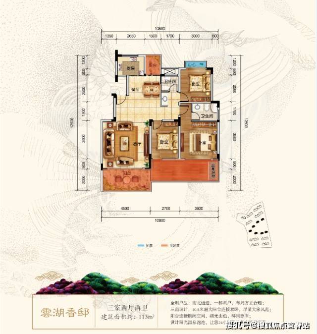 雲湖香邸:面积113.77㎡,赠送12㎡,分布在6#7#8#9#10#11#12#楼,为三室两厅两卫,每种户型明厨明卫,方正、紧凑,布局合理。阳台上设置温泉泡池。精装修交房,3500/㎡装修标准,业主只需购买部分家电家具即可入住。