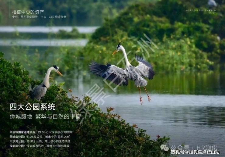 约3.4平方公里中央公园、约24万m2燕晗山郊野公园、约68.5万m2华侨城国家湿地公园、深圳湾超总十字生境、绿景白石洲约1.2公里中央绿轴,约15km滨海长廊,与华侨城三大主题公园,共同组成深圳超级公园带,每一次呼吸与远眺,都有来自国家级生态保护区的气息。