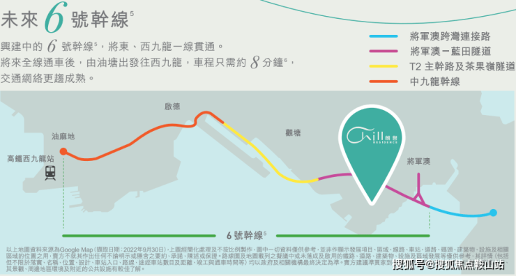 此外,在建中的6号干线将来全线通车后,由油塘出发往西九龙,车程约8分钟。