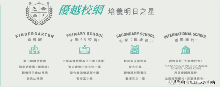 其中距离启历学校(九龙湾校舍)最近,开车约9分钟可达,该校成立于1976年,面向4至18岁的英语学生开放,提供小学到高中的全面教育。