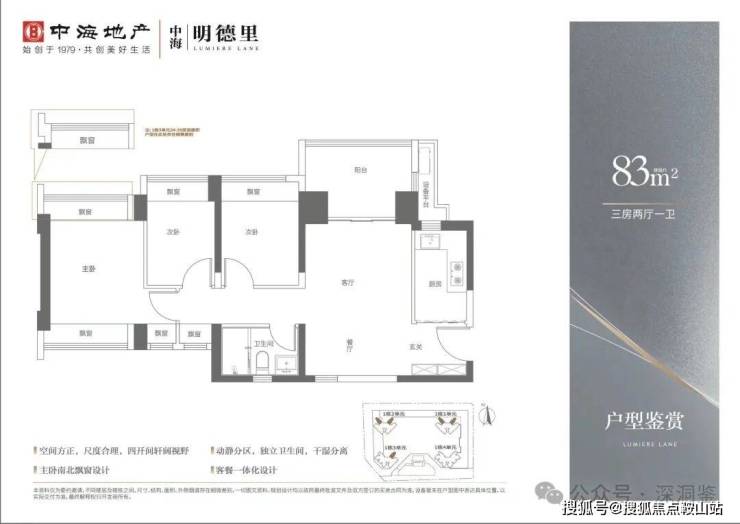 【建面83㎡3居】420-450万,3室2厅1卫, 南·北朝向,楼栋分布于1栋3单元/1栋2单元