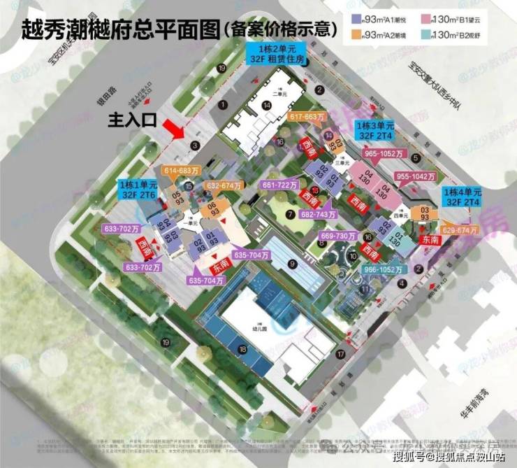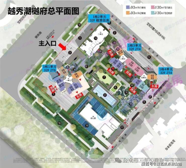 由3栋住宅和1栋保障房组成,其中1栋1、3、4单元为32层住宅,共420套93-130㎡3-4房,1栋2单元有360套租赁住房。