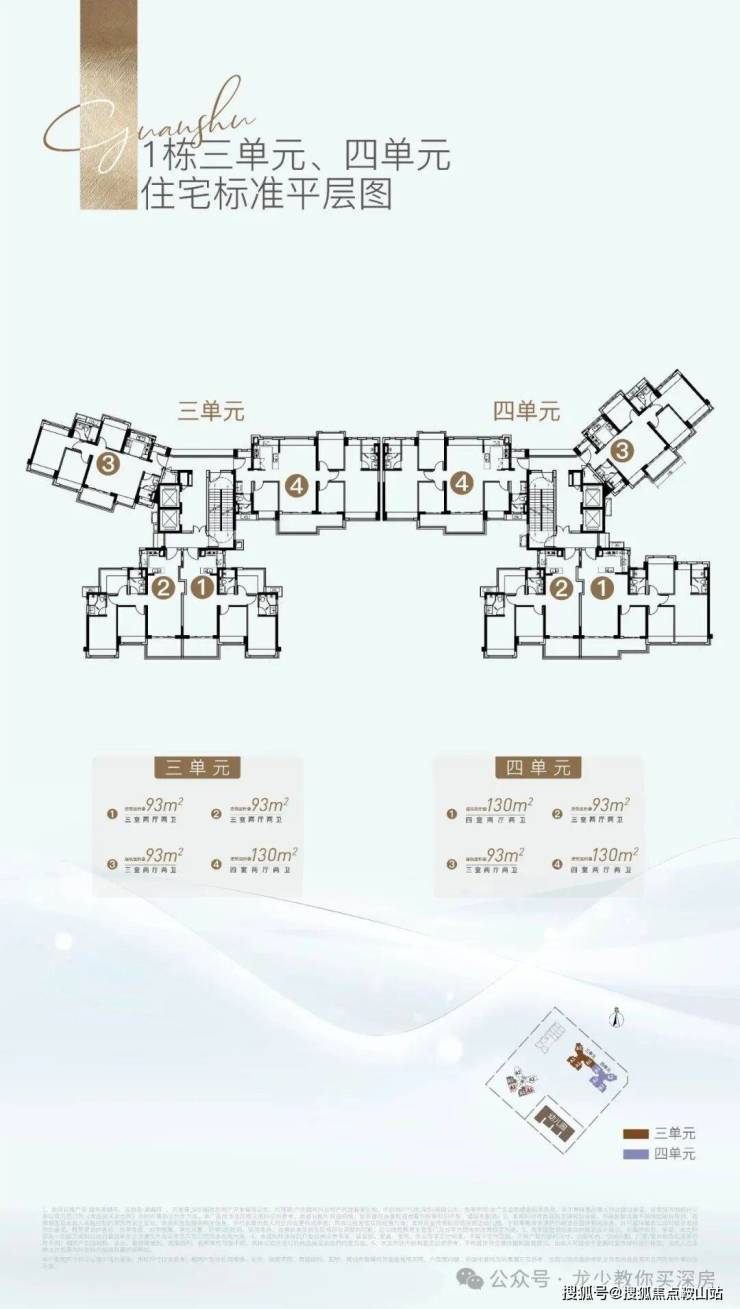 1栋3、4单元是2栋连体,2T4户,比1单元多了130㎡通透和竖厅4房。
