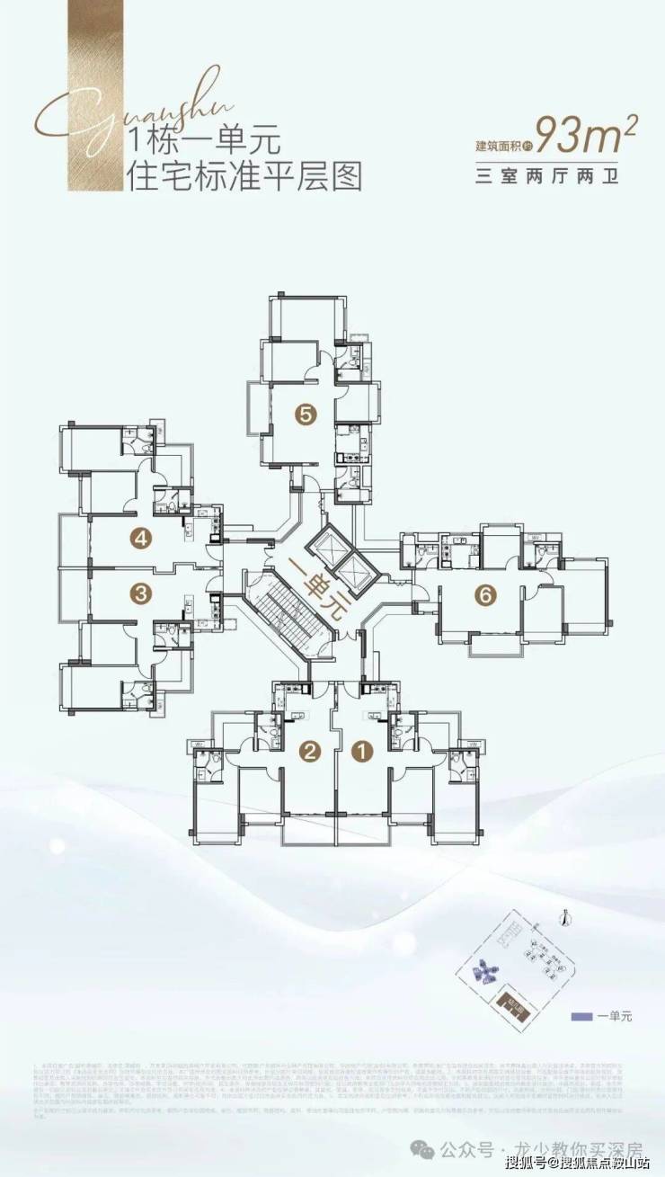其中1栋1单元,2梯6户,全部为93㎡横厅和竖厅3房。