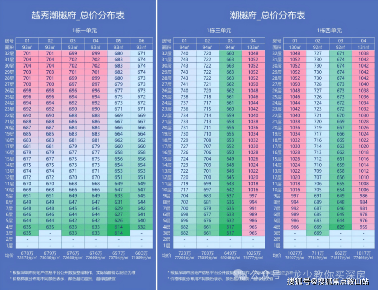93㎡3房单价6.58-7.94万/㎡,总价614-743万,130㎡4房单价7.23-8.08万/㎡,总价955-1052万。