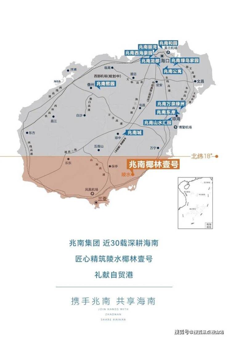 开发商:陵水兆南房地产开发有限公司土地性质:70年产权住宅用地、40年产权商业用地占地面积:总占地约127亩总建面:约14万㎡(住+商)规划总栋数:目前规划共14栋,其中包含3栋商业、9 栋住宅、栋酒店和1栋综合楼。