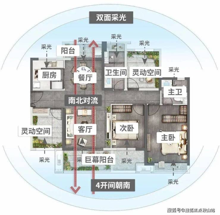 |建面约117平3+1户型设计另一个建面约117平竖厅3+1户型设计,布局传统,尤其方正。对喜欢大家庭、南向生活的买家来说,这个户型非常友好,从主卧到次卧,再到N+1灵动空间,四开间朝南,你与家人的每一个早晨,都能在和风旭日里睡到自然醒。