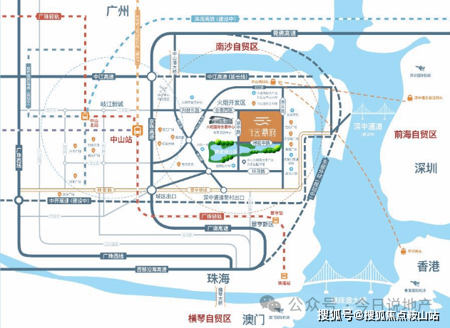 项目交通1港口,项目距离中山港码头仅800余米,可以直接乘坐水上巴士前往深圳机场、香港中港城、香港国际机场。2高速,从项目出发,约20分钟车程就可进入京珠高速和广澳高速,由北往南串联东佛高速、中江高速、中开高速、广珠西线和西部沿海高速。3大桥,项目距离深中大桥黎村出口仅15分钟车程(约6km),40分钟内途径深中大桥轻松抵达深圳前海自贸区,中山港大桥直接贯通南沙自贸区、虎门大桥贯通广深莞。轨道交通:中山高铁站