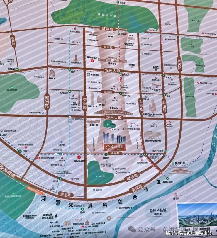 商业方面自带7万㎡购物中心(规划“会展南广场”);周边2公里内集聚福田五大商圈(皇庭广场、卓越INTOWN等18个大型商业体)