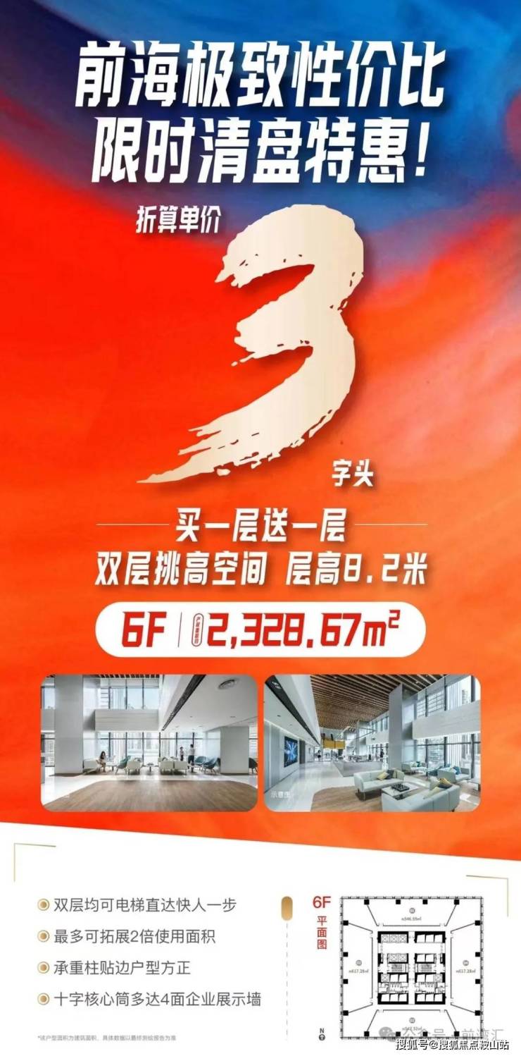 写字楼:英国TFP前海力作,门户式造型,进入前海区域的地界标识,创平面双大堂,开放式大堂、挑高约15米商务大堂,2.9m净高,14部品牌申梯,900多个车位。