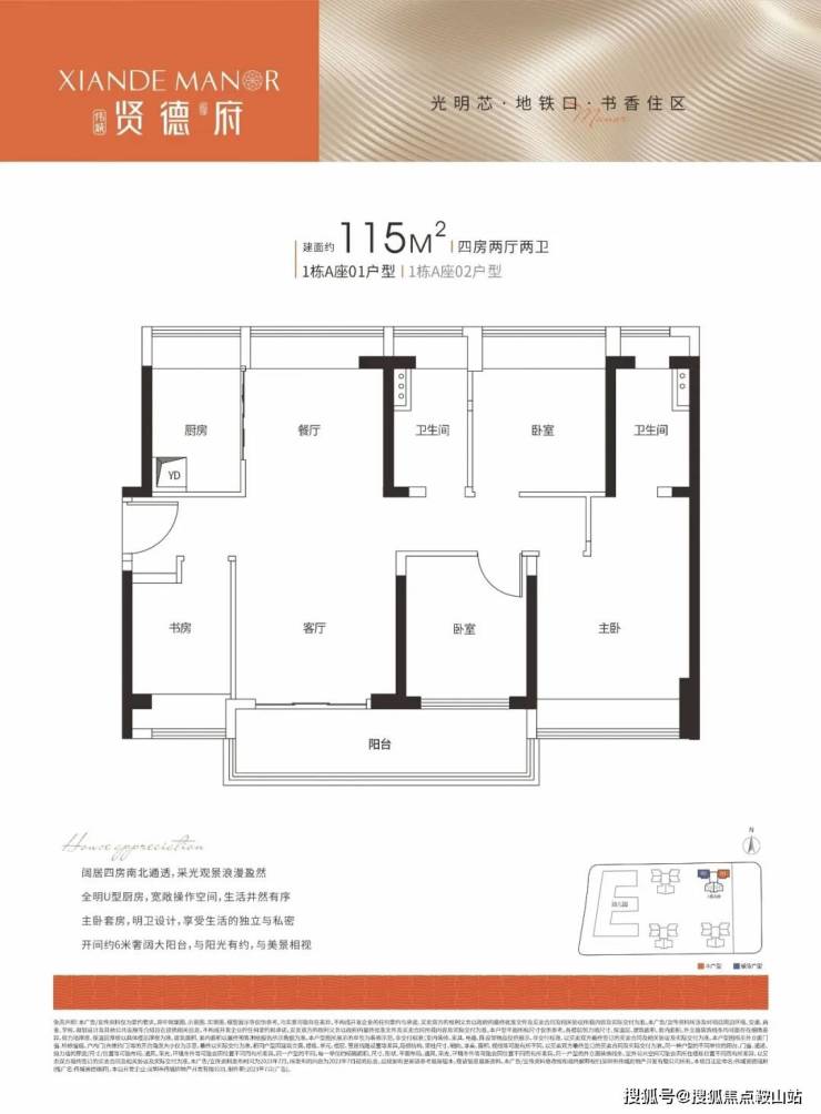 115㎡ 4房2厅2卫竖厅南北对流、餐客分离,主次卧均带飘窗、最大化延伸居住空间,超大阳台拥有更佳的采光和景观视野。