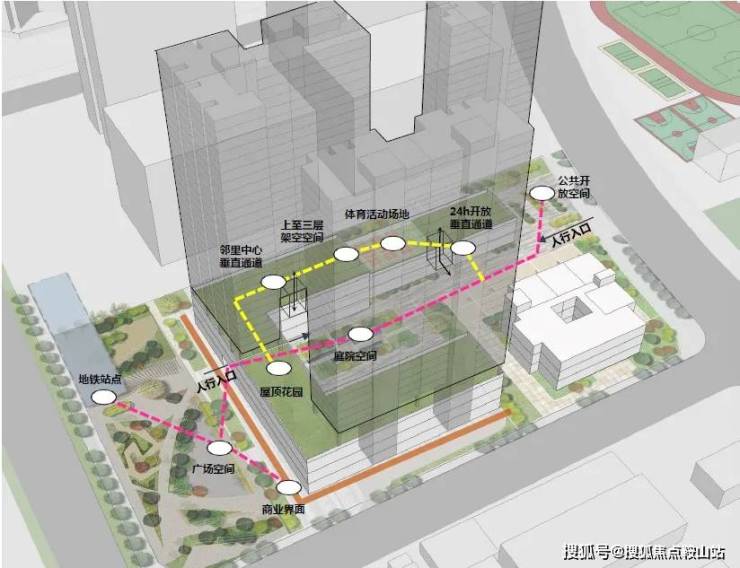 在社区入口处:利用商业和交通之间的关系,通过链接沿街商业,实现商业式归家。