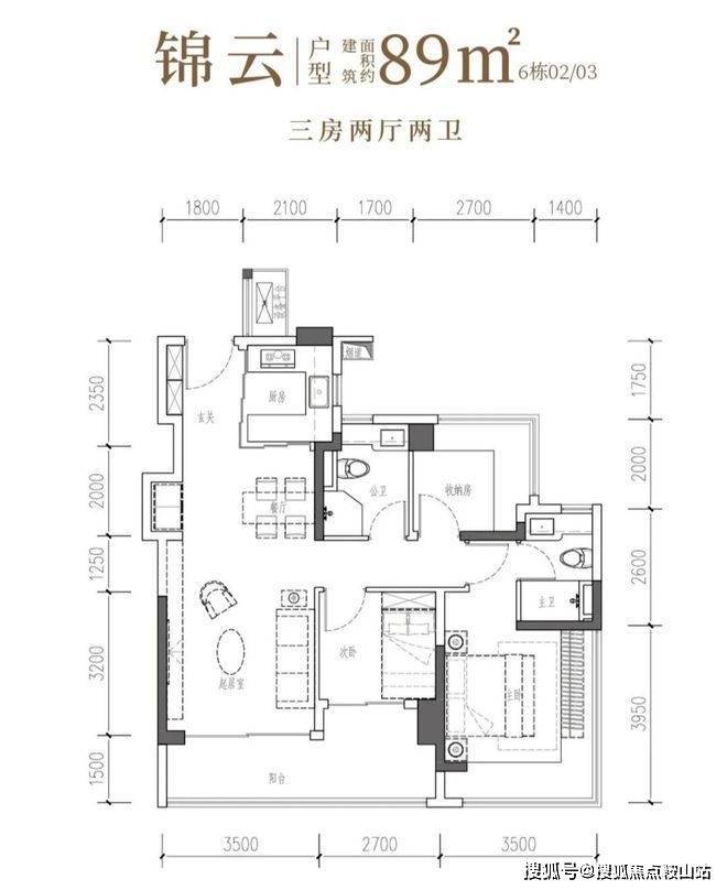 户型约88-107-130-139-178㎡的3-5房,标准层为2T3、2T5到2T6户。