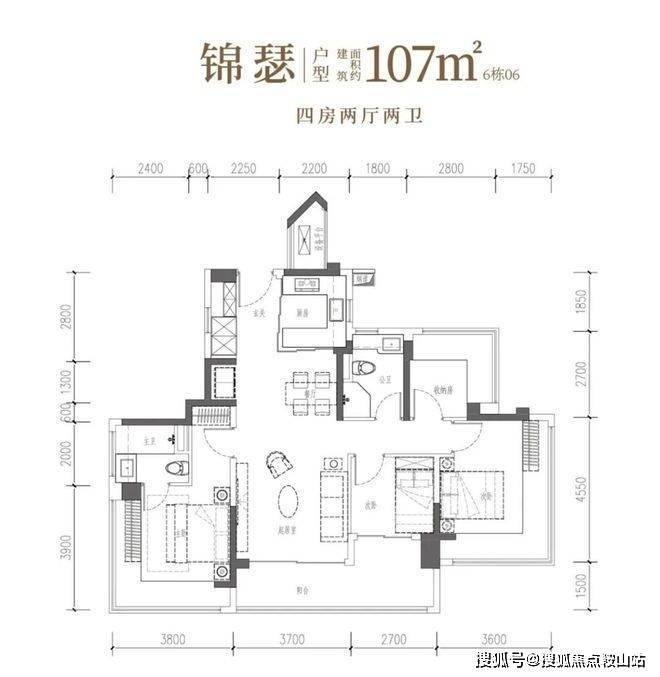 户型全屋都做上凸窗,亮点在于烟道外置,阳台部分空间可改造,加上小高层公摊少,赠送后高达100%。