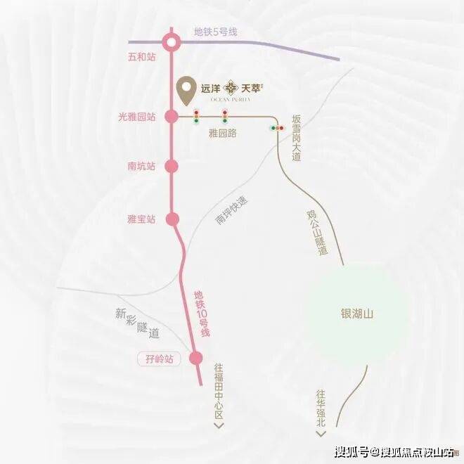 远洋天萃世纪(别名:天萃世纪雅园)作为远洋在深圳2024年全新首发的项目,远洋天萃世纪与地铁10号线光雅园站无缝衔接,电梯下楼无缝进站,3站到福田, 1站到五和交通枢纽,便捷换乘至5号线,也是少有的TOD无缝直连项目, 拥有真正无风无雨连地铁的真正宜居TOD生活。