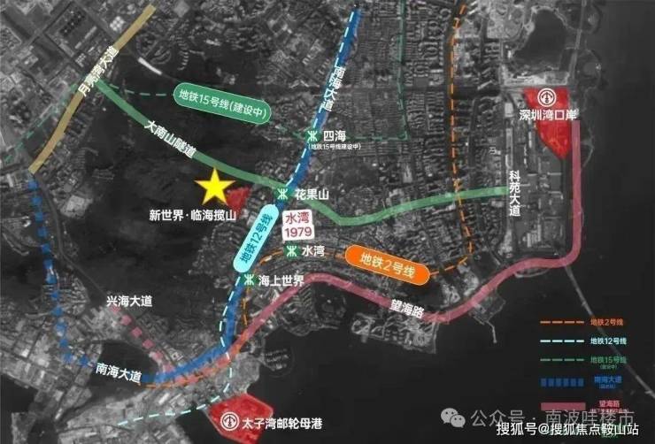 交通配套:地铁2号线水湾站、海上世界站,12号线花果山站(图工业六路);南海大道及沿江高速;邮轮母港、蛇口港、深圳湾口岸。