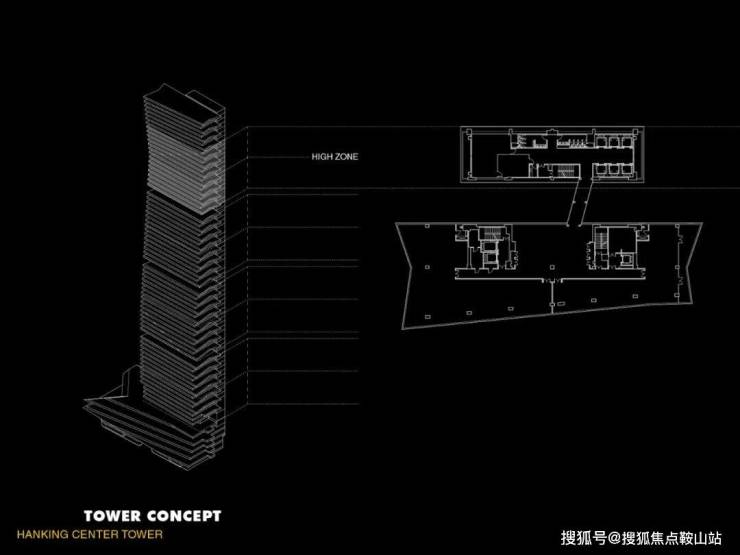 Morphosis 建筑事务所设计的汉京中心,采用核心筒外置的设计手法,最大化建筑平面的灵活性,将流线与各类基建设施置于塔楼外侧,对摩天塔楼类型建筑进行了再定义。先进的塔楼结构满足了室内空间配置的多样性,玻璃天桥和大型钢结构支撑将核心筒与塔楼主体紧密相连。项目竣工于2018年,到2021年才正式对外开放。这栋359.8米汉京中心是目前世界上最高的核心筒外置塔楼。