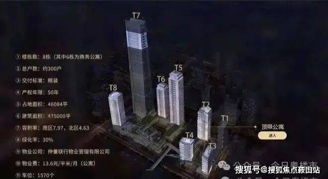 南区分为:T5、T6、T8公寓,T7为环球商务中心。