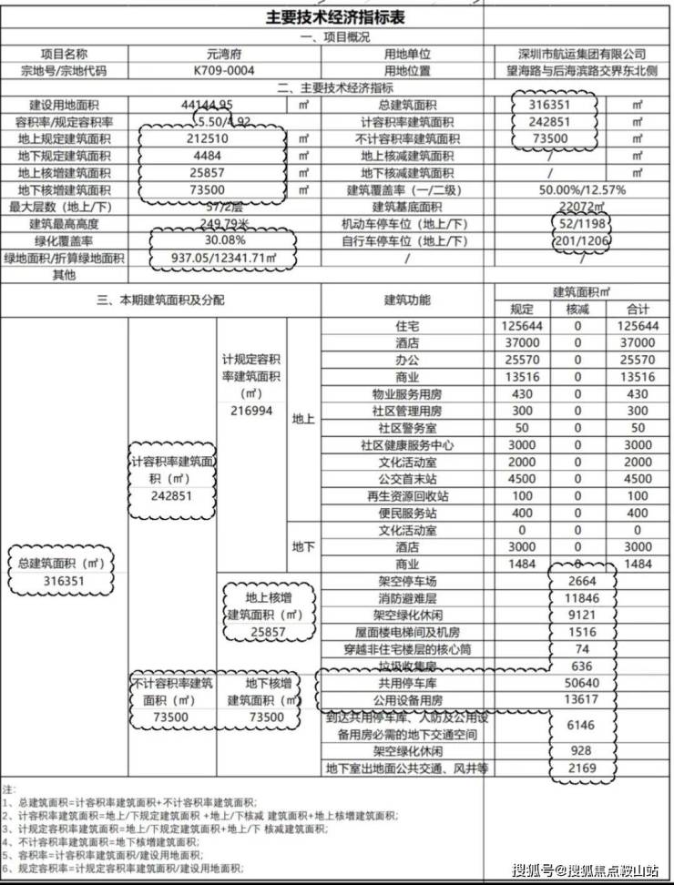一期指标表修改:总建筑面积由207205平方米调整为205461平方米,计容积率建筑面积由156113平方米调整为154301平方米,容积率由5.53调整为5.46;计规定容积率建筑面积由137577平方米调整为137735平方米,其中商业面积由3153平方米调整为1311平方米,文化活动室由0平方米调整为2000平方米;地上核增建筑面积由18536平方米调整为16566平方米,地下核增建筑面积由51092平方米调整为51160平方米;建筑总高度及层数由54/2层、192.42米调整为51/2层、183.12米;建筑基底面积由11803平方米调整为12796平方米。总指标表相应修改。