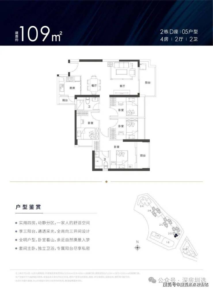 建面约78-129㎡3-4房户型方正,南北通透,享主卧、客厅、厨房三阳台设计,超高使用率,拥有超大景观面,居家即可观美景。