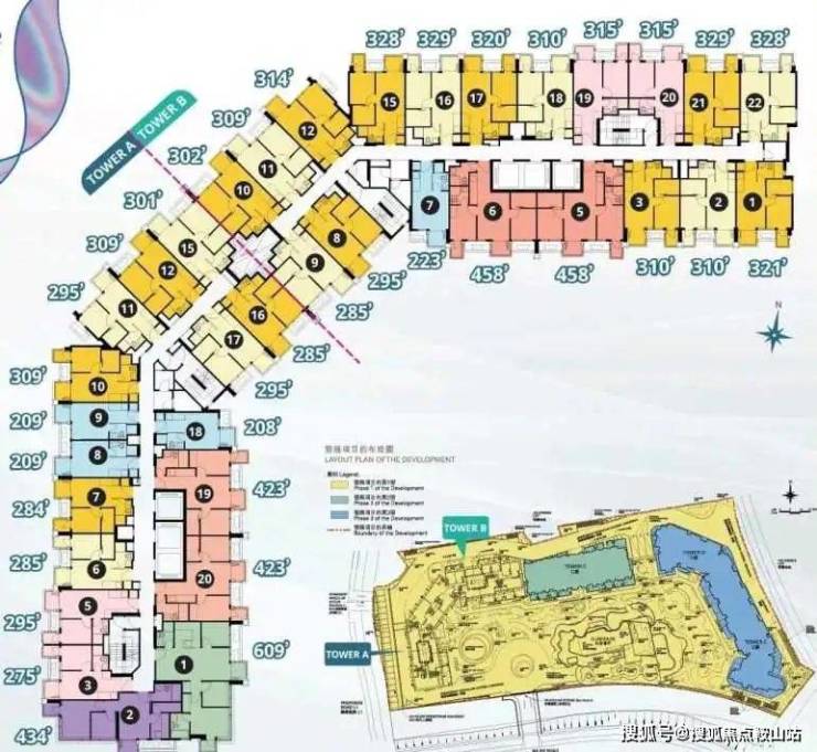 第一期两座大厦以C字形摆尾,以望外围的北、西北、西方向和望內园的南、东南、南方向为主,外围方向预计未来将望山景和邻近的新盘楼景为主。