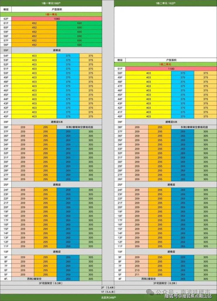 ——超高区 58F起(200米以上)是约500-700㎡顶级大平层;