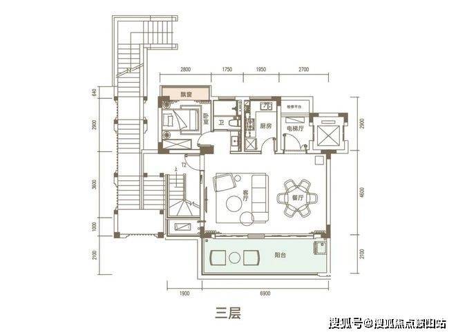上叠面积134㎡(为3.4层)三房两厅三卫(可实现3➕1房)赠送顶楼露台