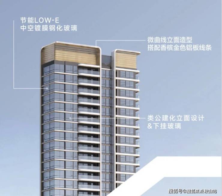 四海臻邸二期,以媲美城市公建的轻盈镜幕外立面设计,打造约180米艺术立面横轴,革新蛇口城市界面。