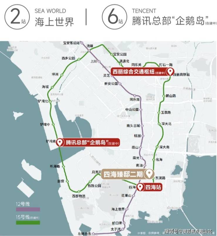 双地铁仅200米,12号线“换乘之王”、15号线(在建中)“深圳一环线”交汇于此,6站直达腾讯总部“企鹅岛”(在建中)、7站直达西丽综合交通枢纽(在建中),串联前海、南山和宝安中心区,生活通勤圈强势“扩圈”!