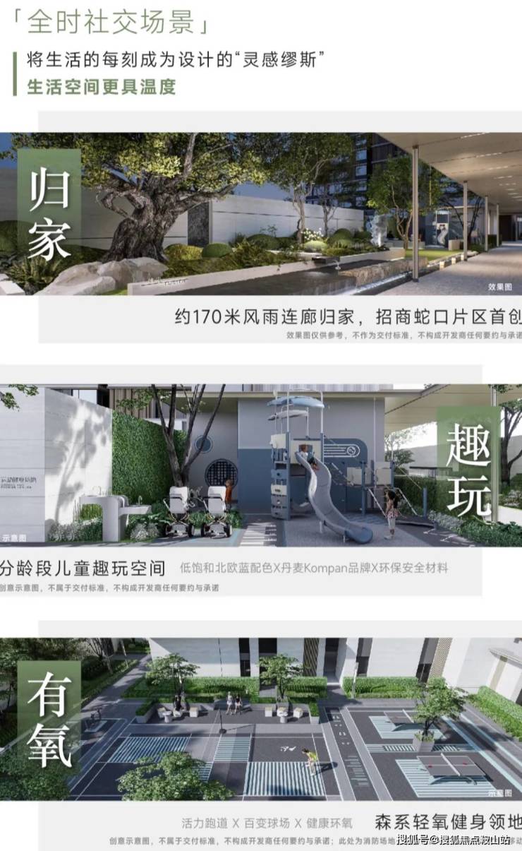 迭新5重社区空间礼序,以「场景感」的有序聚合取代设计符号的重复堆砌,延伸蛇口封面生活,回应蛇口的从容生活追求。