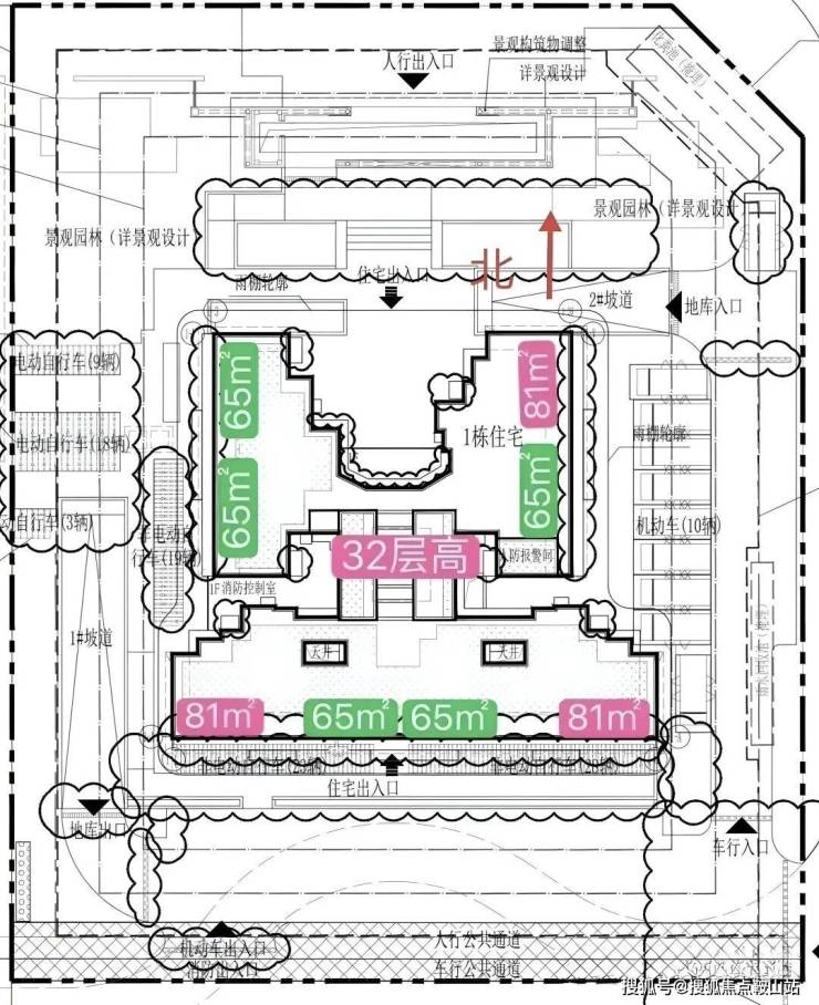 它的缺点就是被周围其他小区包围,只有东北向81㎡户型可以看到学校。