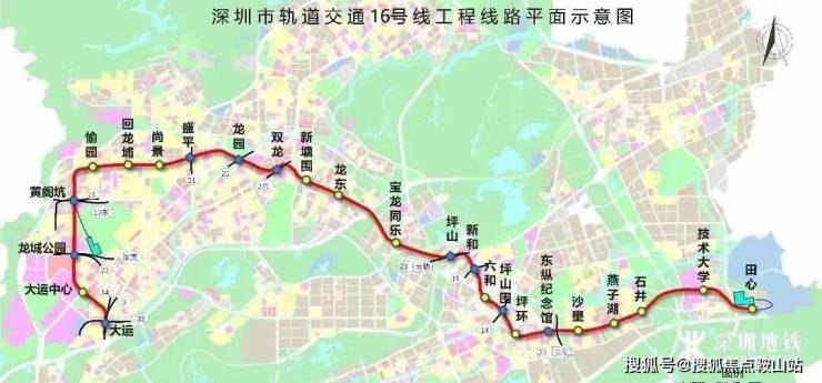 地铁16号线:连接大运新城、龙岗中心城、双龙、坪山高铁站及坪山新区等地区是东部组团内部的轨道线路。