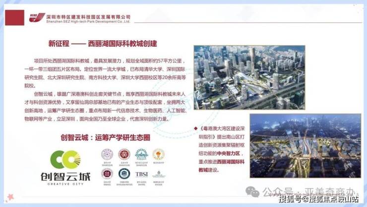 创智云城坐落于深圳市南山区西丽街道创科路与打石二路交汇处,是留仙洞战略性新兴产业总部基地的启动区。项目由深圳市特区建设发展集团打造,总用地面积约 13.73 万平方米,总建面达 136 万平方米,分三期开发。