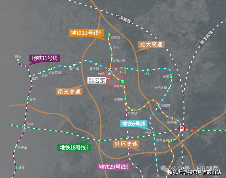 双地铁:地铁6号线公明广场站、13号线公明南站(在建)创享湾芯生活