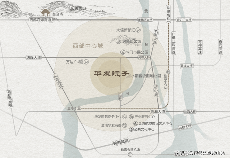 华发院子,是继华发山庄之后,华发升级迭代的新中式别墅产品。项目位于珠海西部中心城区,北靠又一城、南望黄杨河!小区整体三面环水,享水郡省级湿地公园天然大氧吧。联袂名家共同打造,融合了传统中国元素及岭南特色文化,打造出来极具品质的标杆新中式院墅