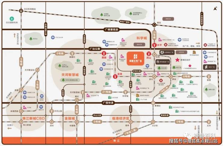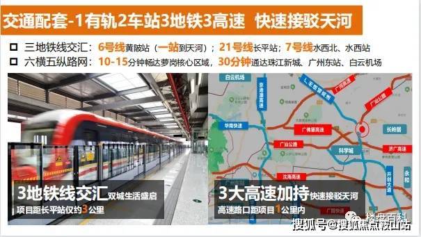 地铁——毗邻地铁6 号线黄陂站和金峰站,与地铁21 号线长平站和在建的地铁7 号线二期水西站相距不远;6号线1站到天河,2站可达苏元换乘21号线,6站天河客运站,无缝链接天河CBD;