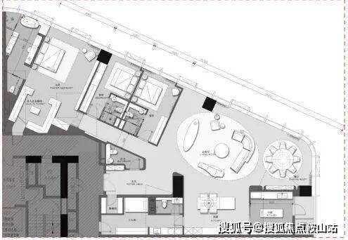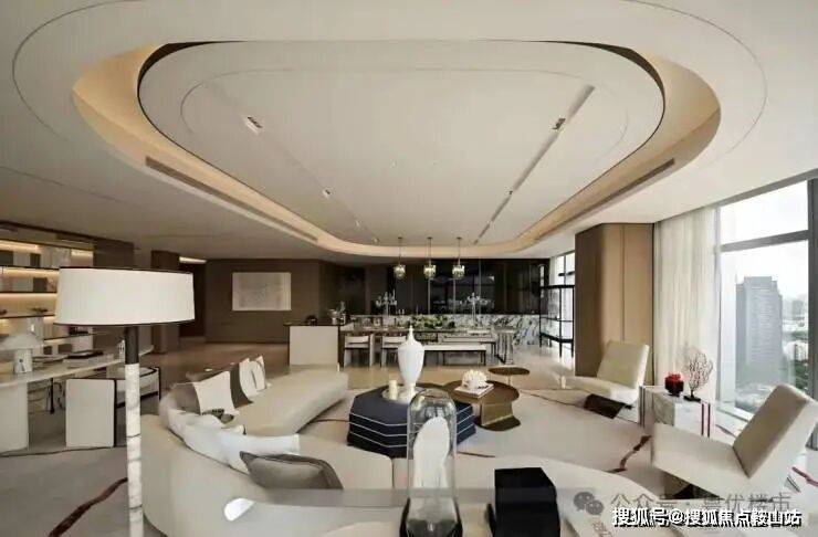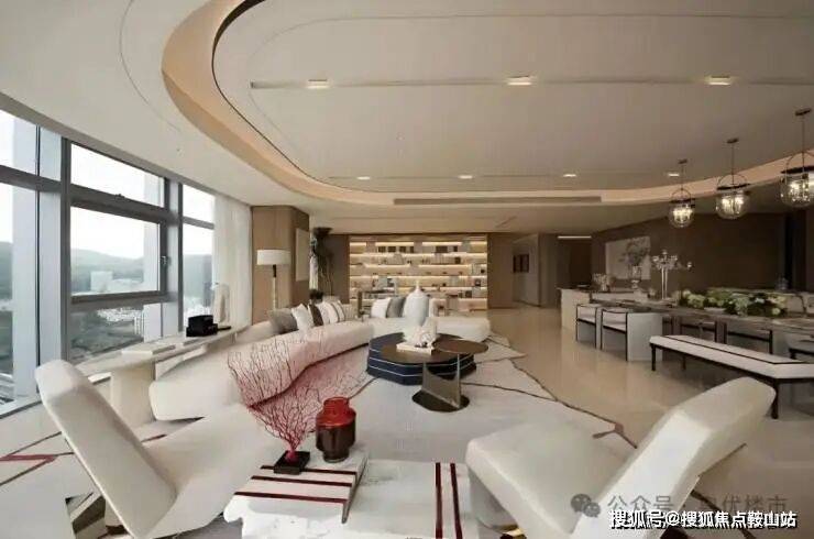 建筑面积约 439㎡,为 3 + 1 房 2 厅 2 厨 5 卫布局。该户型由 LSD 亲自操刀设计,拥有 270°城市与绿化景观,高区可看海景。采用全套房、双主卧设计,客餐厅开间超 10 米,方正主卧面积达 24㎡且为明卫设计,次卧带阳台,中西厨结合,还有多功能房,空间灵活多变。