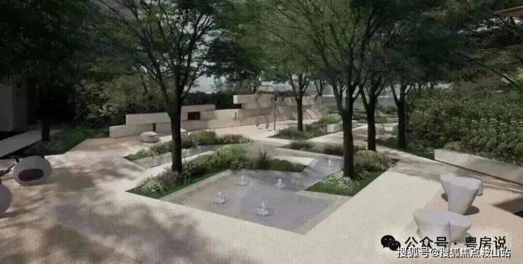 约400㎡无界亲子多元互动型泳池,与7栋架空层联动,在架空层内布置淋浴更衣、消毒池等功能,与周边绿化融合,无硬边界,绿植做隔断,旁边设置跌水景观。