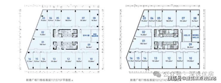 ·一层大堂层高11.9m,面积约555㎡(T1)
