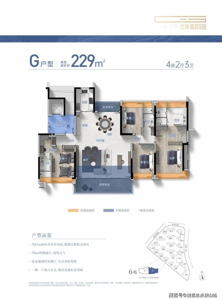 建築面積約104-229㎡3-4房美學平層,著落其間
