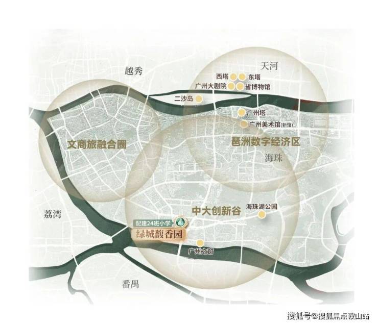 “琶洲数字经济区、文商旅融合圈、中大创新谷”三大产业板块环伺