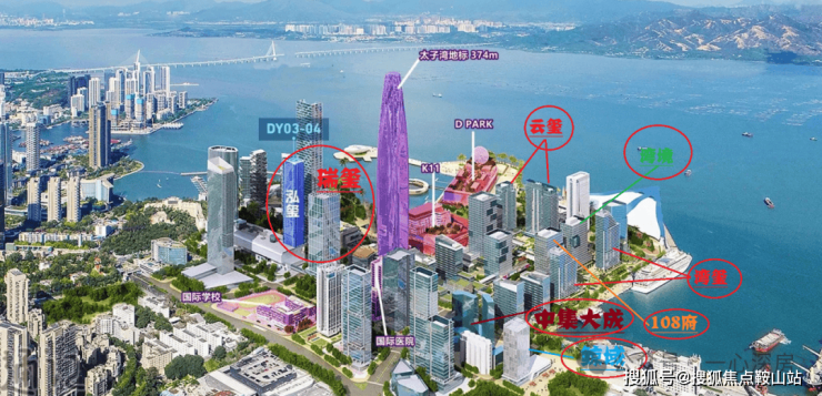 ◎ 鼎级配套:建面约170万m²海滨艺术文化综合体(约61万m²商务集群,含约380m超高塔尖商务总部+约46万m²滨海商业,含K11亚洲旗舰商业体、花园城VILLA等+约39万m²国际滨海社区+6万m²文化艺术中心+约8万m²五星级酒店,含约5万方美高梅酒店+约4.5万m²太子湾国际学校、国际医院),全方位城市配套集粹的的国际化“城中之城”。