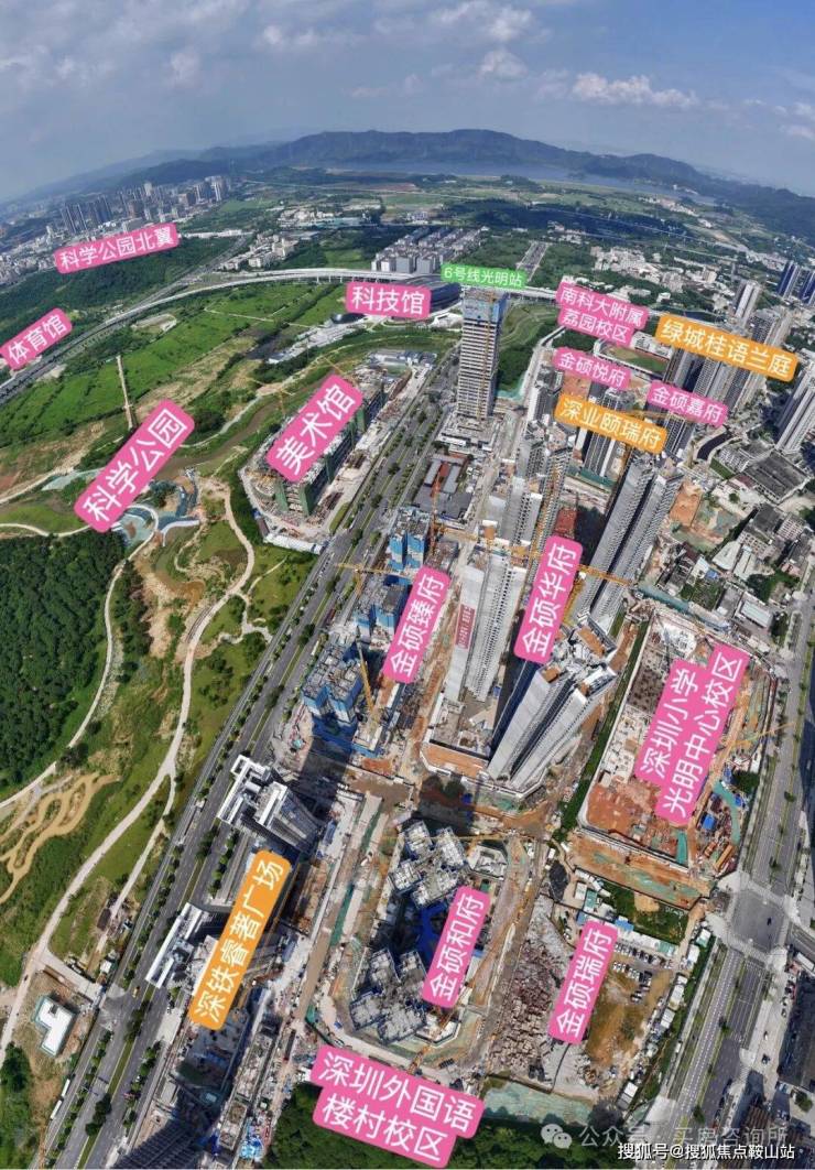 光明中心区科学公园内目前体量最大的新盘、科学公园头排的满京华狮山项目,相当值得关注。这是一个近百万方的综合体大城,集高端住宅、商业、办公于一体。