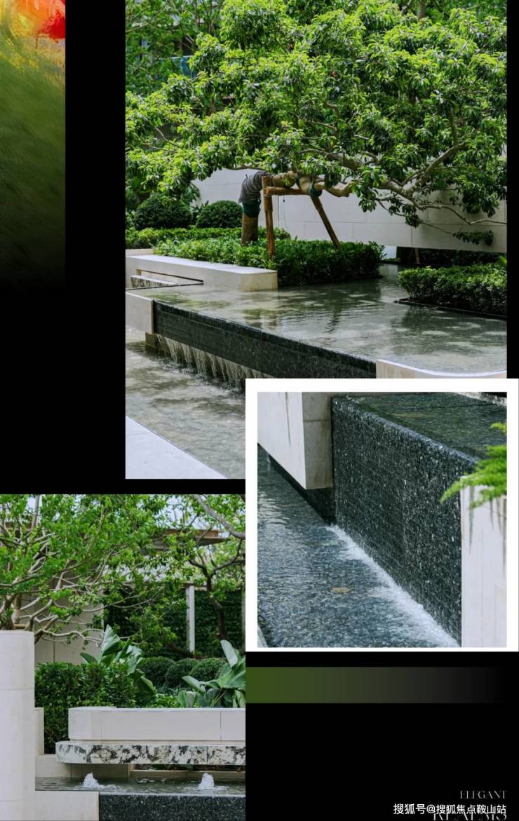 造型铁冬青、乌桕等乔木撑起园林骨架,狐尾天门冬、米仔兰等灌木花草铺就四季底色,常绿与落叶植物搭配出「春有花影、夏有浓荫、秋有金叶、冬有绿意」的全时景观。艺术水景潺潺流动,与阳光、树影共同谱写自然乐章,漫步其间,如在度假酒店般松弛自在。
