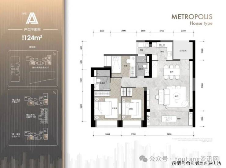 【推售楼栋】1栋一、二、三单元,2栋一单元【住宅面积】115㎡-122㎡-124㎡-144㎡【公寓面积】42㎡【标准层高】3米(住宅&公寓)【楼栋层数】1栋一单元、二单元47F;1栋二单元7-29F;2栋一单元42F【项目产权】70年(住宅&公寓)【物业费】住宅6.87元/㎡/月;公寓6.77元/㎡/月