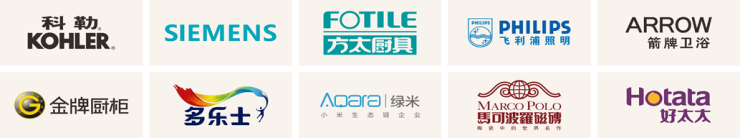 品牌家居: 方太厨具、科勒卫浴、金牌橱柜、飞利浦灯具、西门子插座、箭牌浴室镜柜 鞋纳柜等;