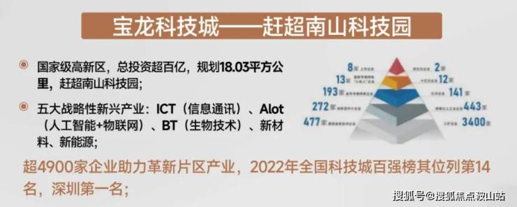 2022年宝龙科技城位列全国科技城百强榜第14名,深圳第一名,2022年宝龙街道规上工业增加值增速居全区第一,规上工业总产值全区第二。