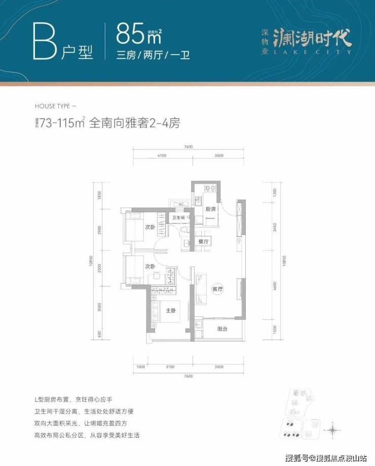 产品面积段:建面约73-115㎡全南宽奢2-4房