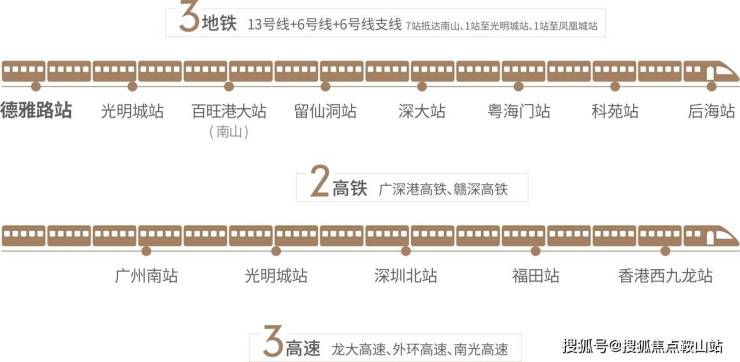 广深港高铁(已通车):1站深圳北,2站福田CBD,3站直达香港、广州